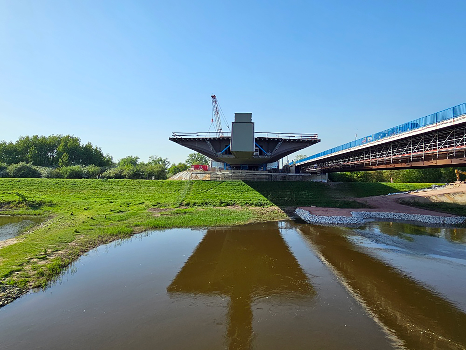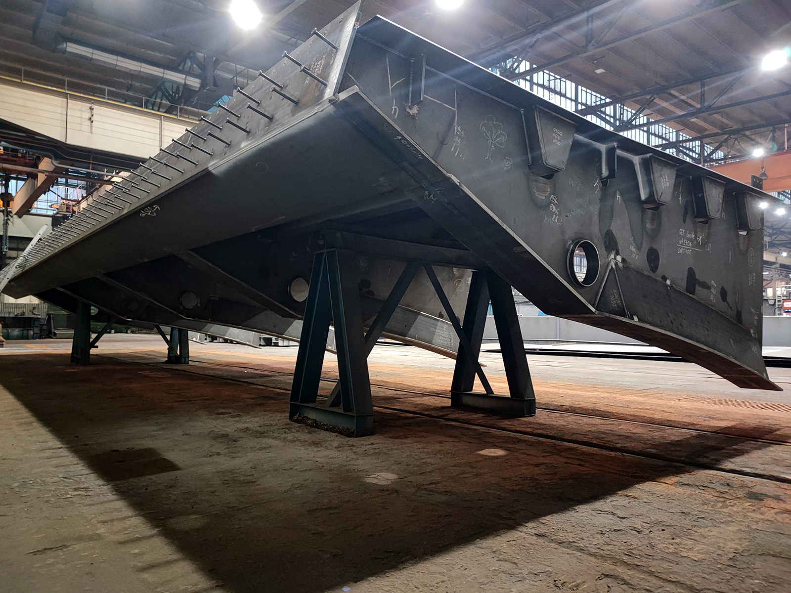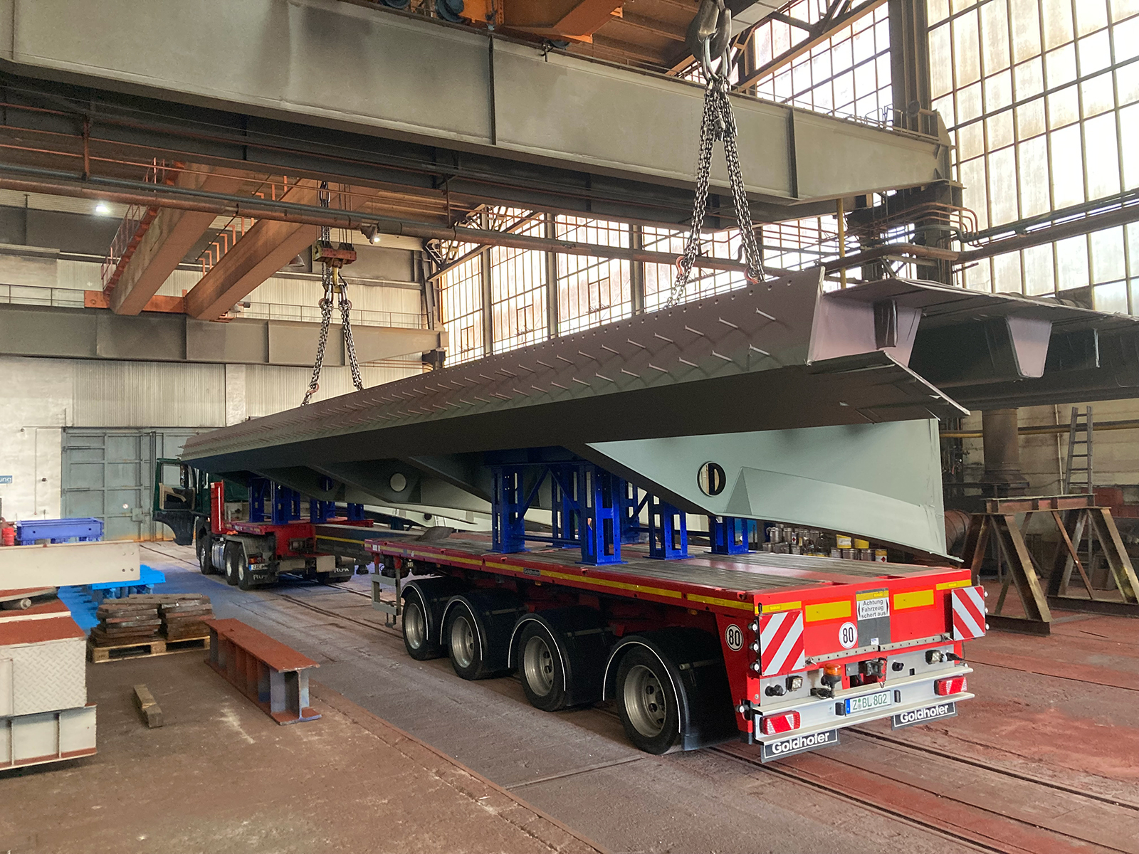 Fertigung und Lieferung der Außenkragträger des Stahlüberbaus für die Elbebrücke Wittenberge auf der Autobahn A14. Umfasst geschweißte Stahlbauteile mit großen Abmessungen (44 Stk. 21m Länge, 5,9m Breite und 2,20m Höhe), präzise Maßhaltigkeit und werkseitig aufgebrachten Korrosionsschutzsystemen. Besondere Anforderungen bestanden in der Fertigung großformatiger Bauteile, der Schweißnahtqualität sowie der logistischen Abstimmung für Transport und Montage auf der Baustelle.