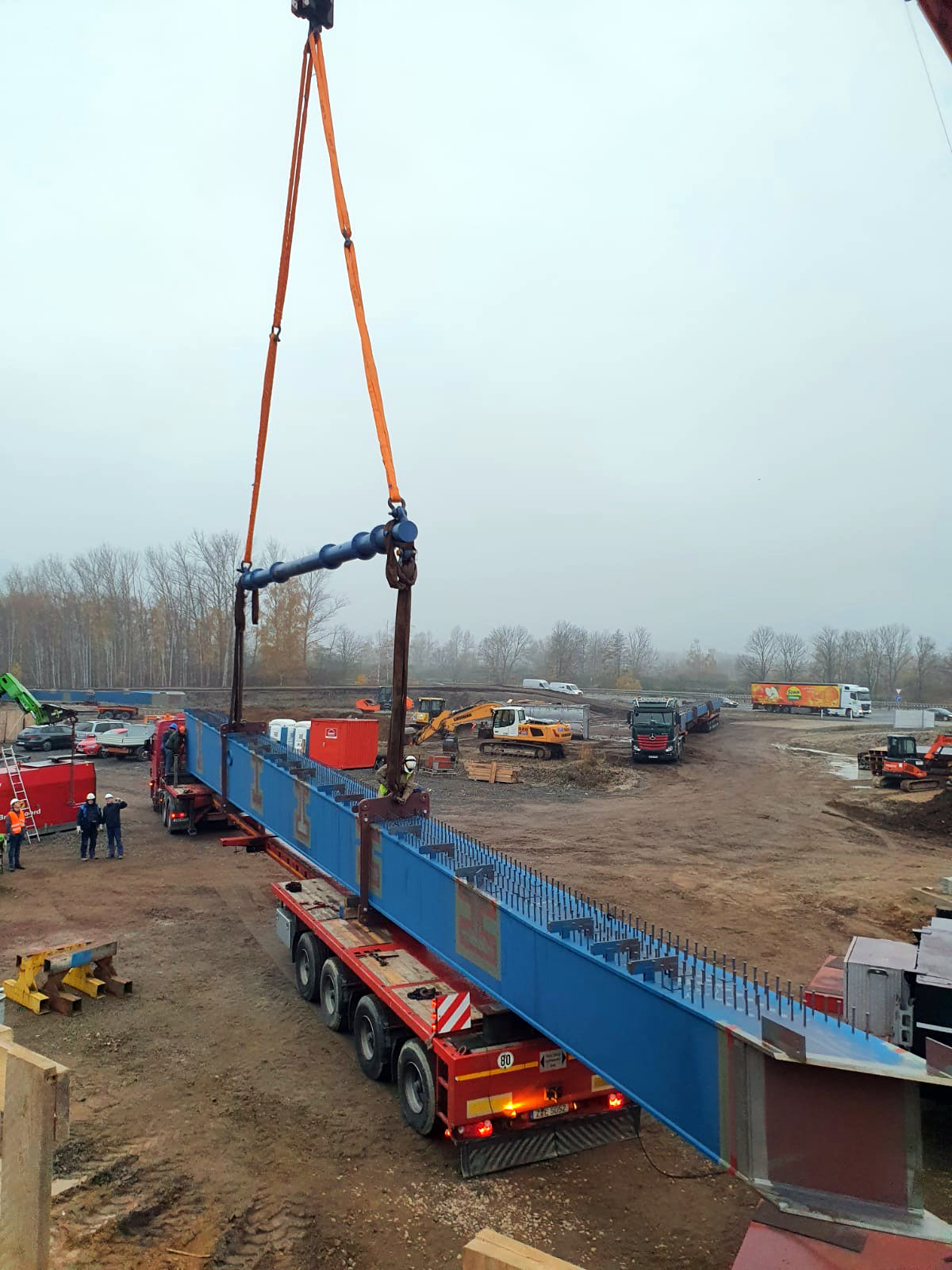 Fertigung und Lieferung der Stahlüberbauten für die Brücke BW 69 auf der A72. Die Konstruktion besteht aus geschweißten Stahlträgern mit hoher Tragfähigkeit und Maßhaltigkeit, werkseitig mit Korrosionsschutzsystem versehen. Besondere Anforderungen lagen in der präzisen Fertigung großformatiger Bauteile, der hohen Schweißnahtqualität und der montagegerechten Ausführung für den Einsatz auf der Baustelle.