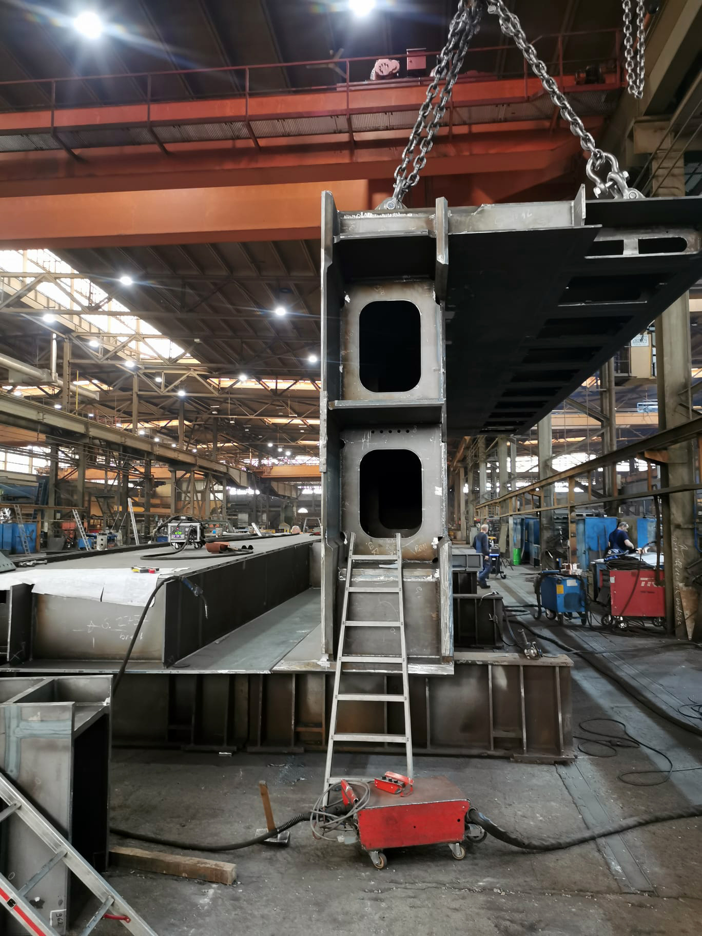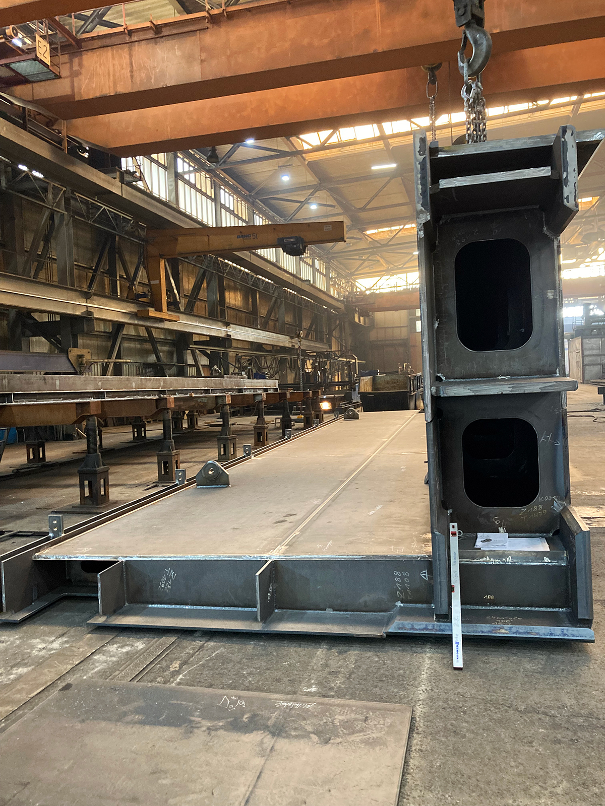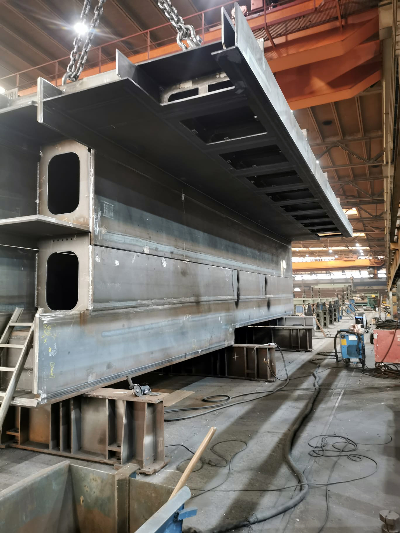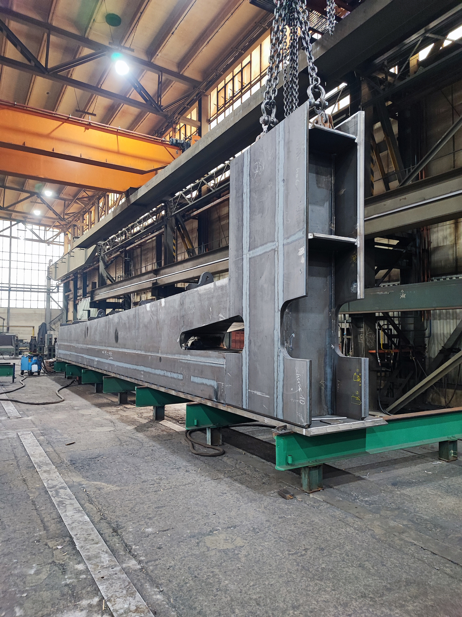 Diese Fußgängerbrücke ist eine filigrane Fuß- und Radwegbrücke in Stahlbauweise. Die Konstruktion ist als schlanker, geschweißter Stahlüberbau ausgeführt und zeichnet sich durch eine hohe Maßgenauigkeit sowie eine klare, reduzierte Formensprache aus. Tragwerk und Geländer sind gestalterisch integriert und überwiegend aus Stahl gefertigt, ergänzt durch einen rutschhemmenden Gehbelag. Die Oberfläche des Stahls ist korrosionsgeschützt und auf hohe Dauerhaftigkeit sowie geringen Wartungsaufwand ausgelegt. Fertigung, Transport und Montage erfordern präzise Vorfertigung, enge Toleranzen und saubere Schweißnahtausführung, insbesondere im Sichtbereich.